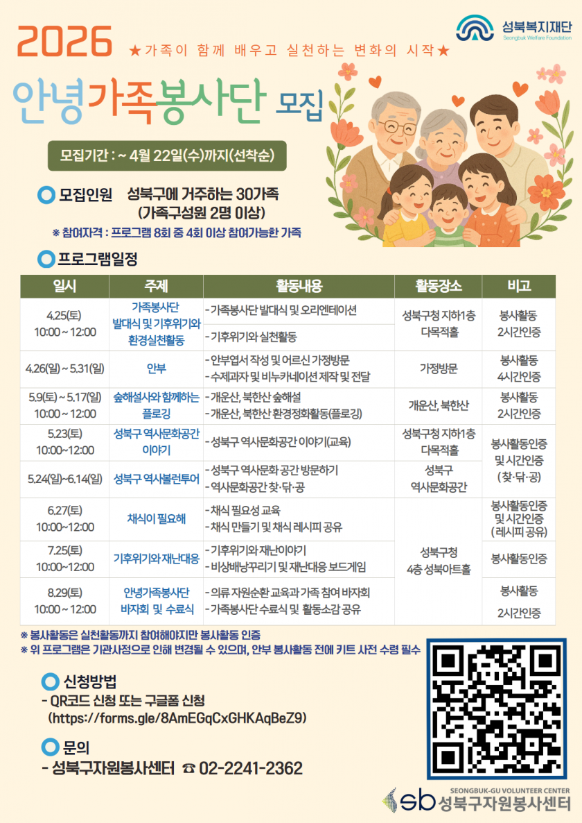 2026년 안녕가족봉사단 참여자 모집