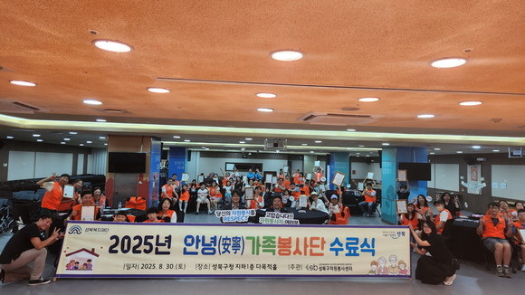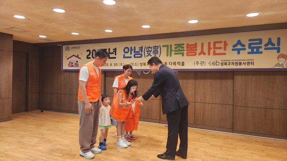 서울 성북복지재단이 지난 30일 성북구청 다목적홀에서 ‘2025년 안녕가족봉사단 수료식’을 열었다. 이번 수료식에는 총 10회기 중 4회기 이상 참여한 24가족이 수료를 했다.